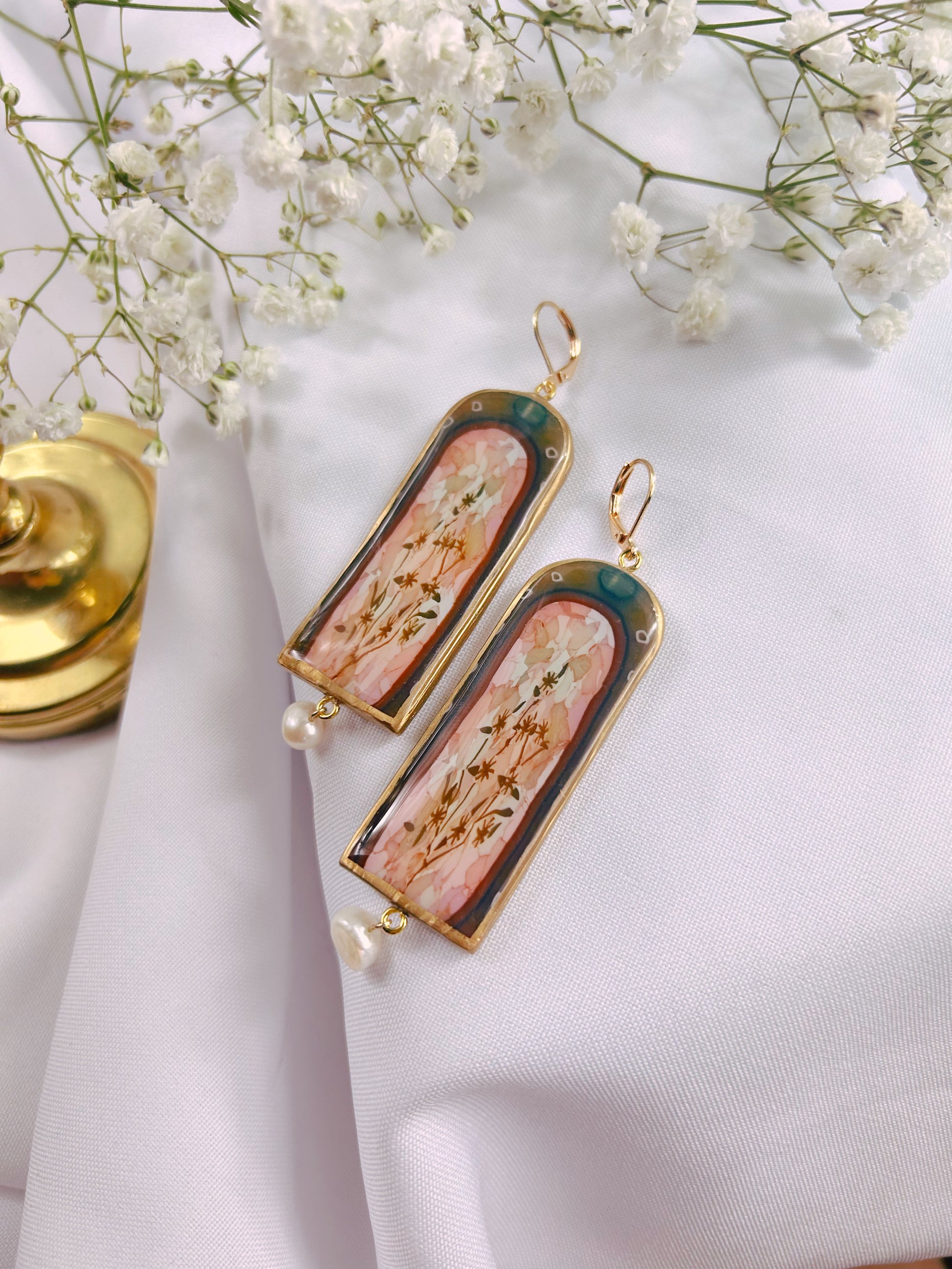 All of my earring designs are made of polymer clay and will include either stainless steel, brass, sterling silver or 14k gold-plated silver studs or hoops. They are all hypoallergenic and safe for those with sensitive ears.