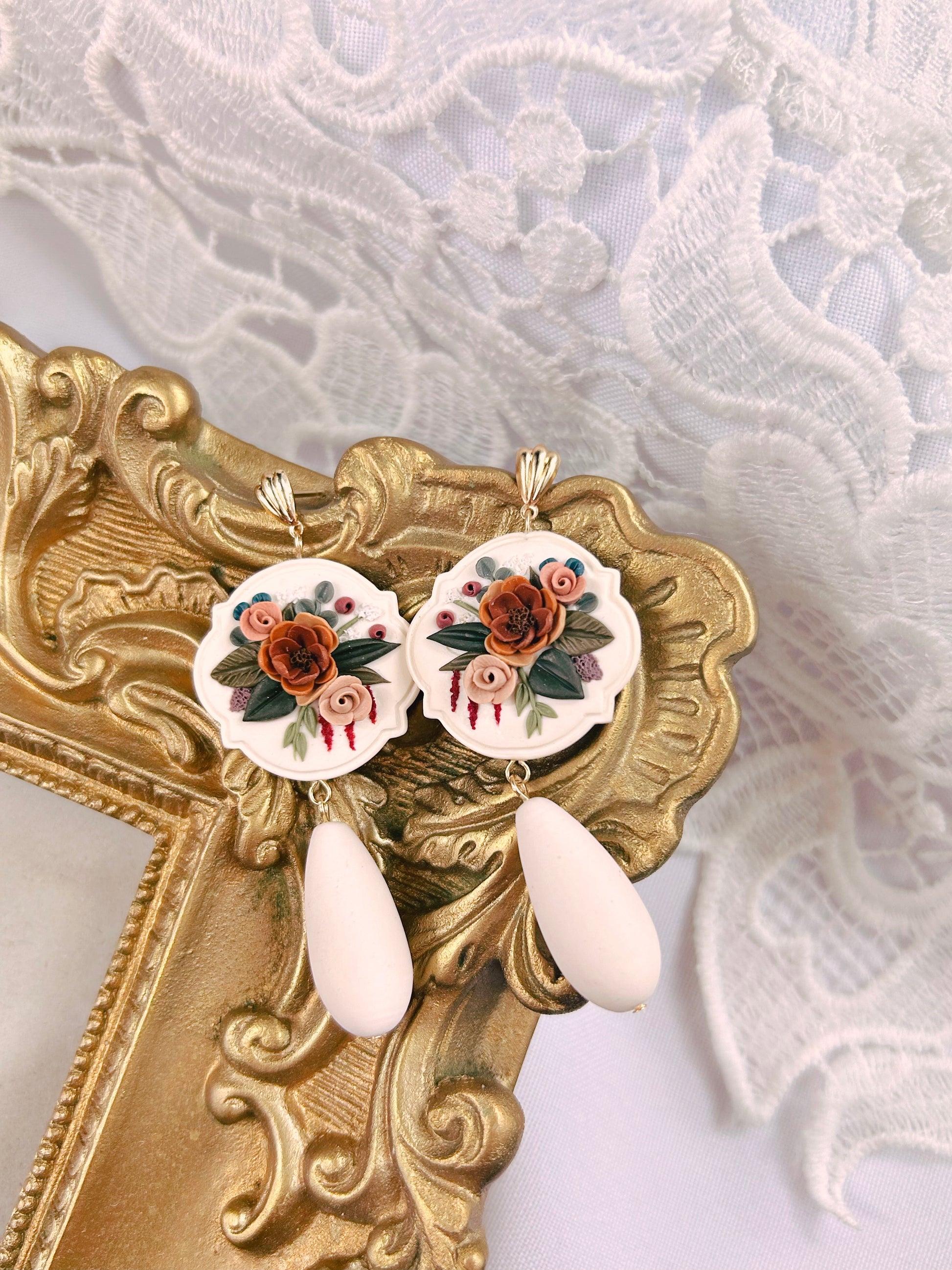• Do not attempt to bend or reshape the earrings, even if they seem flexible. They can and will break with enough pressure. My earrings are all oven-baked and are not meant to be reshaped after they are completed.
