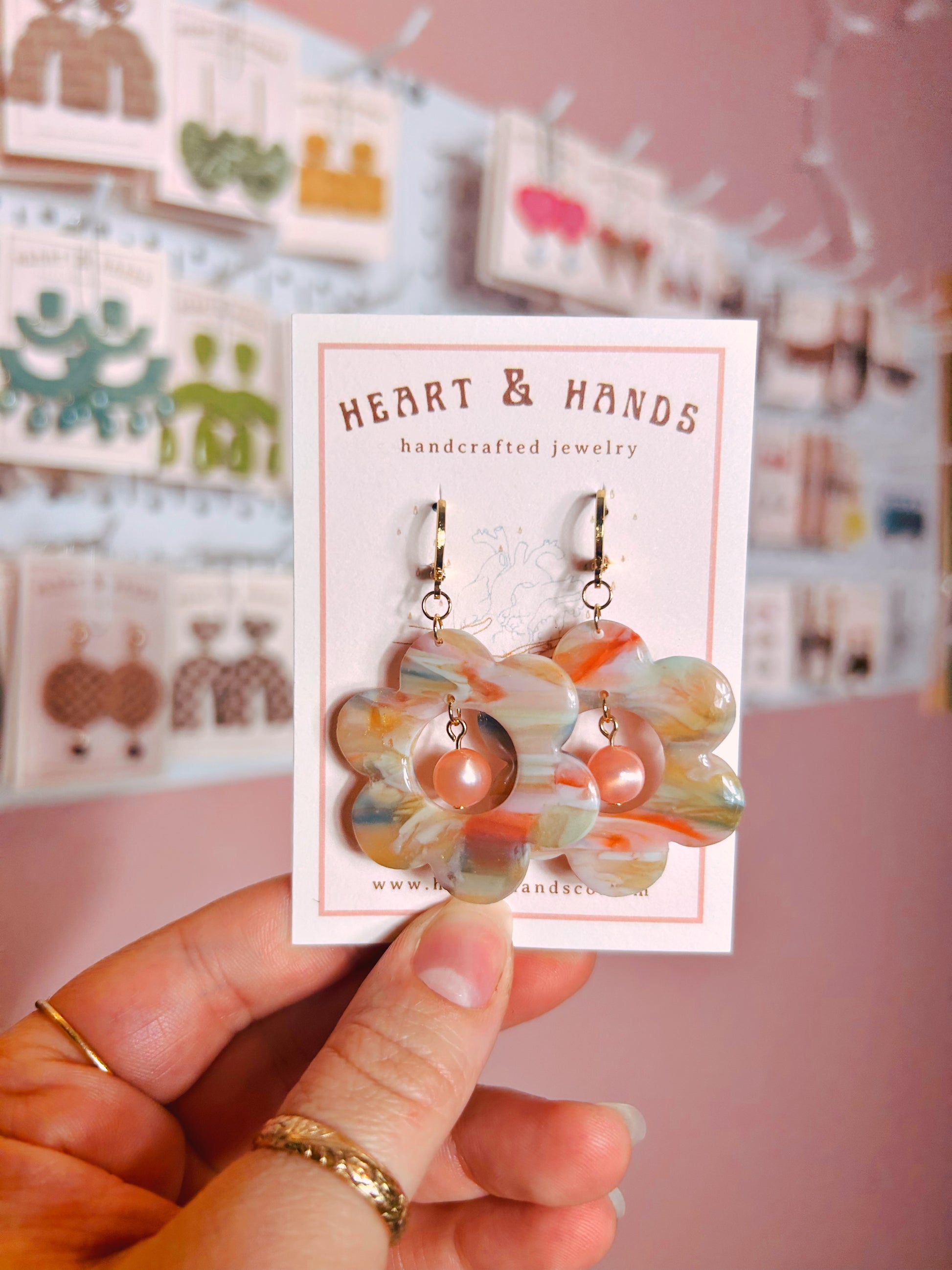 All of my earring designs are made of polymer clay and will include either stainless steel, brass, sterling silver or 14k gold-plated silver studs or hoops. They are all hypoallergenic and safe for those with sensitive ears.