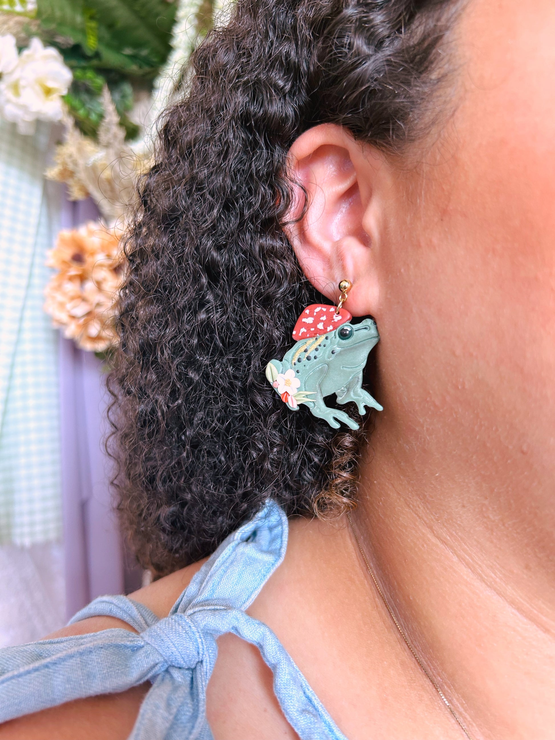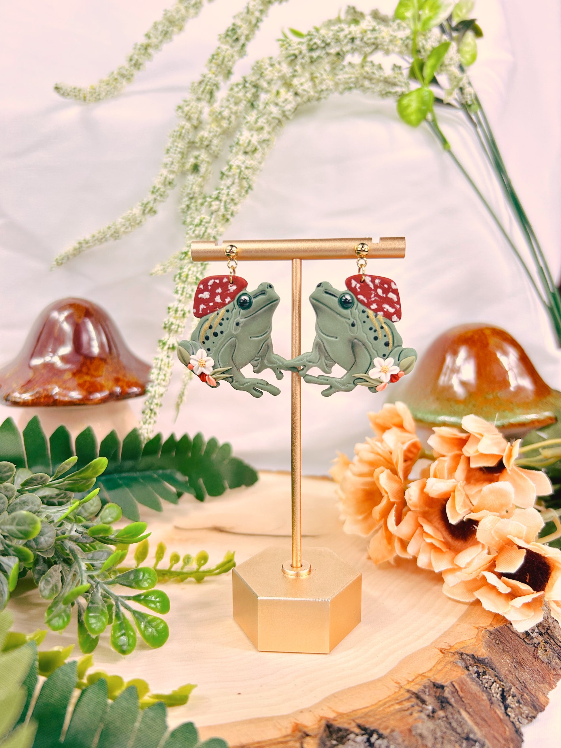 All of my earring designs are made of polymer clay and will include either stainless steel, brass, sterling silver or 14k gold-plated silver studs or hoops. They are all hypoallergenic and safe for those with sensitive ears.