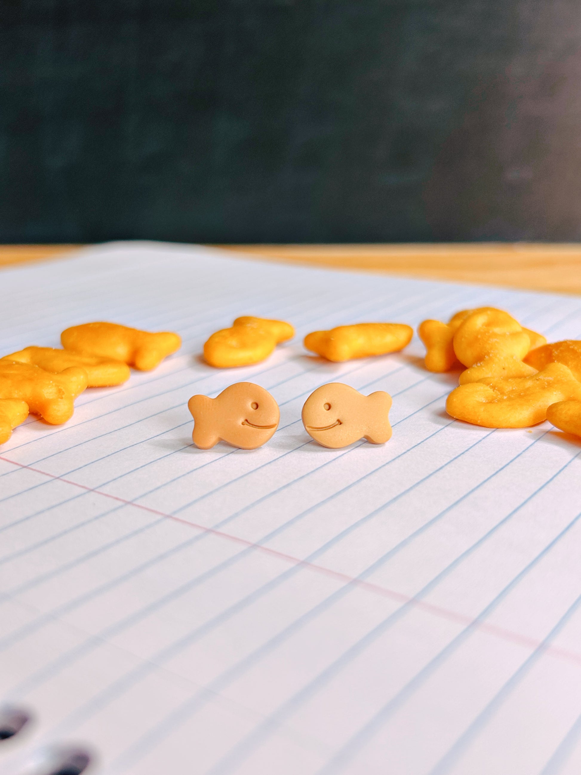 All of my earring designs are made of polymer clay and will include either stainless steel, brass, sterling silver or 14k gold-plated silver studs or hoops. They are all hypoallergenic and safe for those with sensitive ears.