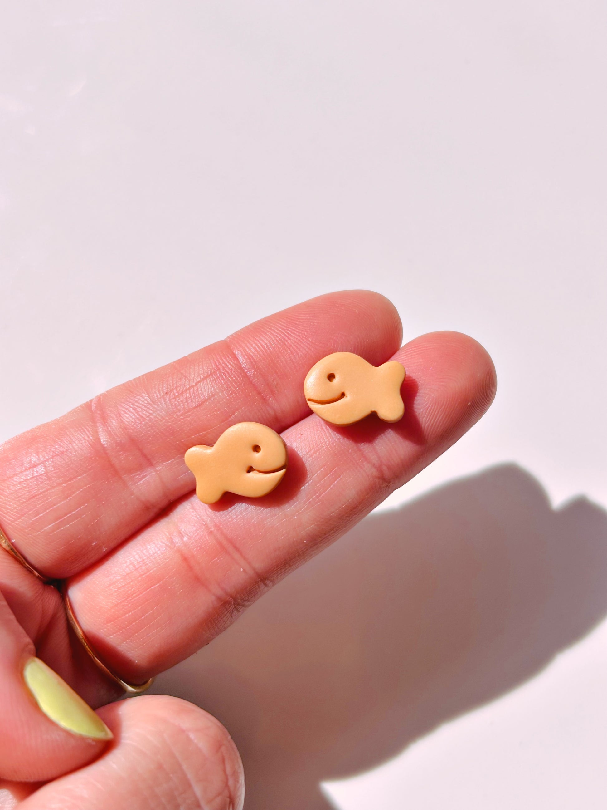 All of my earring designs are made of polymer clay and will include either stainless steel, brass, sterling silver or 14k gold-plated silver studs or hoops. They are all hypoallergenic and safe for those with sensitive ears.