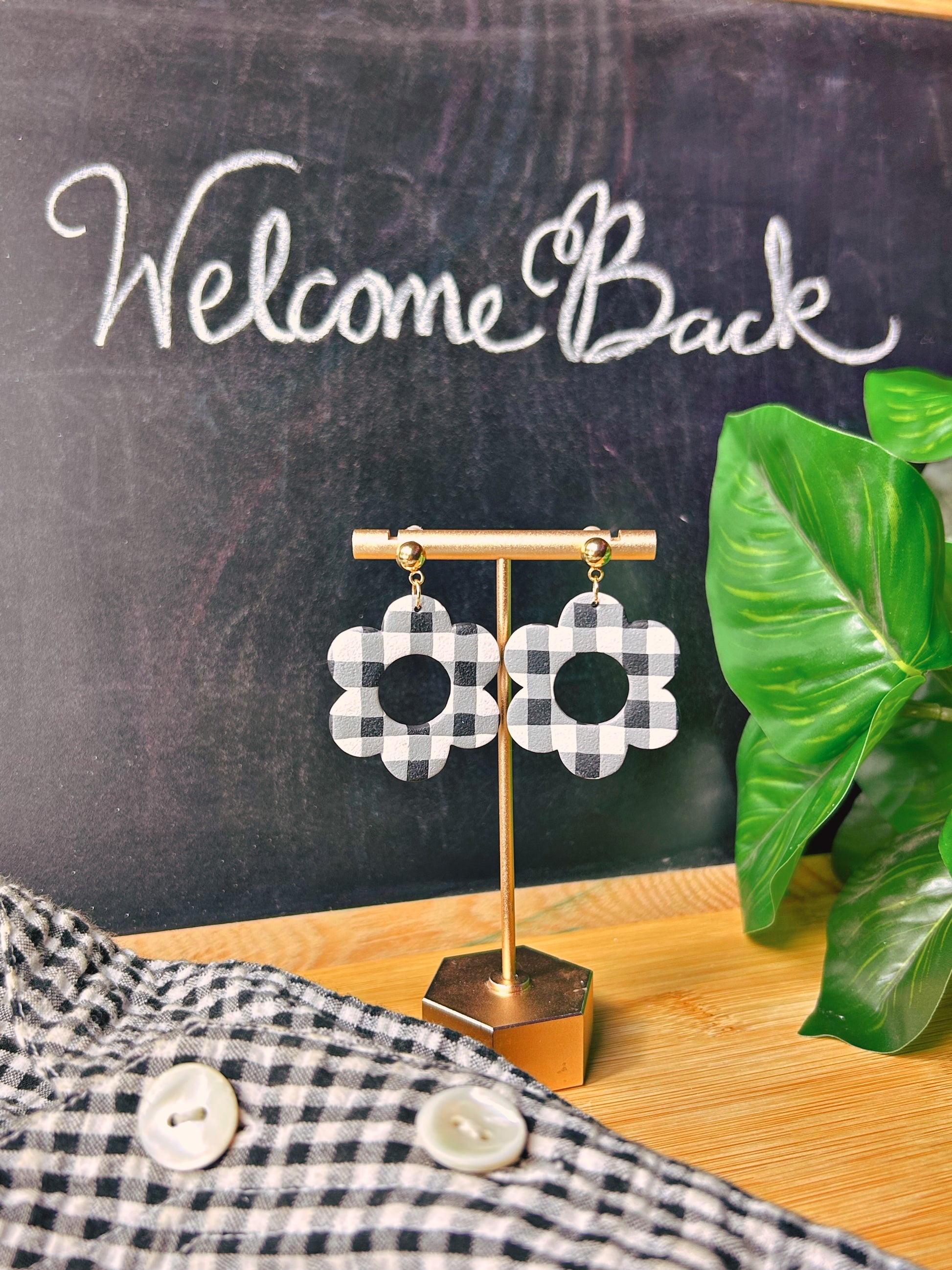 All of my earring designs are made of polymer clay and will include either stainless steel, brass, sterling silver or 14k gold-plated silver studs or hoops. They are all hypoallergenic and safe for those with sensitive ears.
