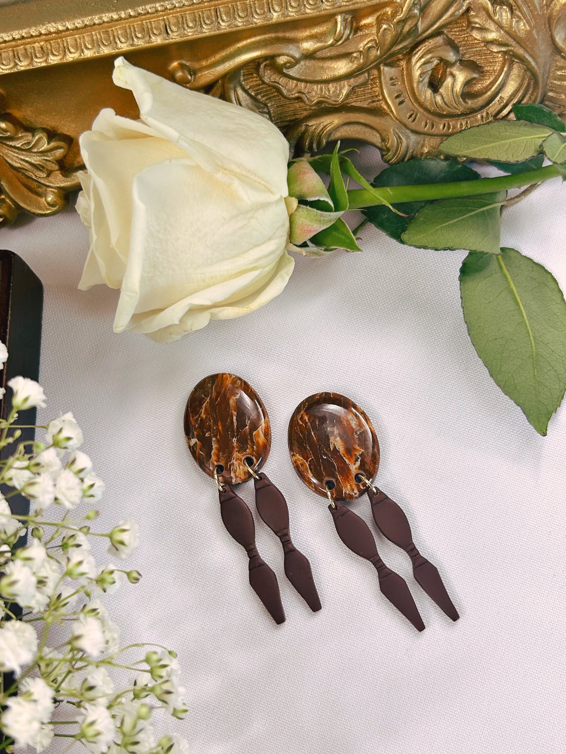• Do not attempt to bend or reshape the earrings, even if they seem flexible. They can and will break with enough pressure. My earrings are all oven-baked and are not meant to be reshaped after they are completed.