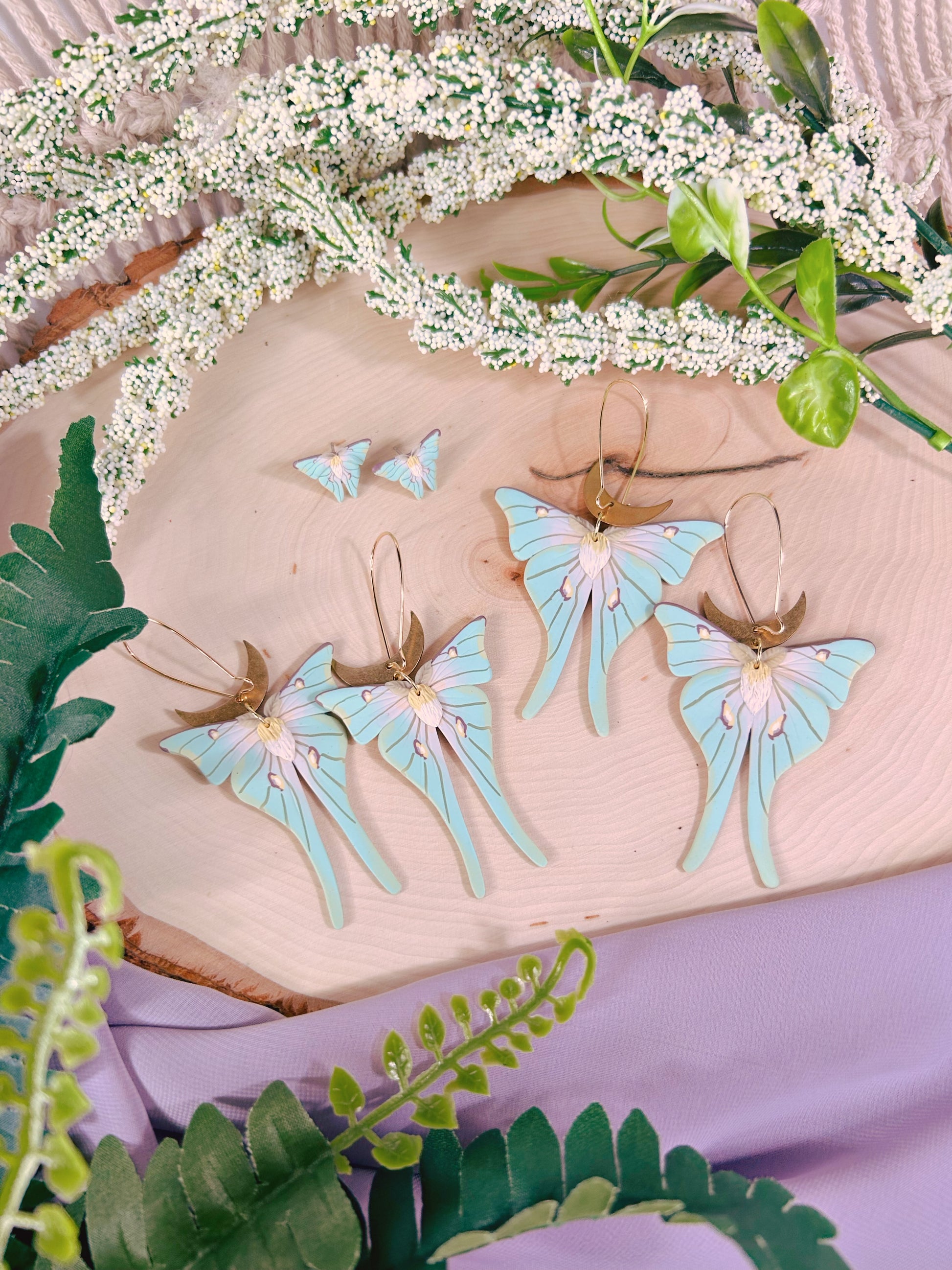 All of my earring designs are made of polymer clay and will include either stainless steel, brass, sterling silver or 14k gold-plated silver studs or hoops. They are all hypoallergenic and safe for those with sensitive ears.