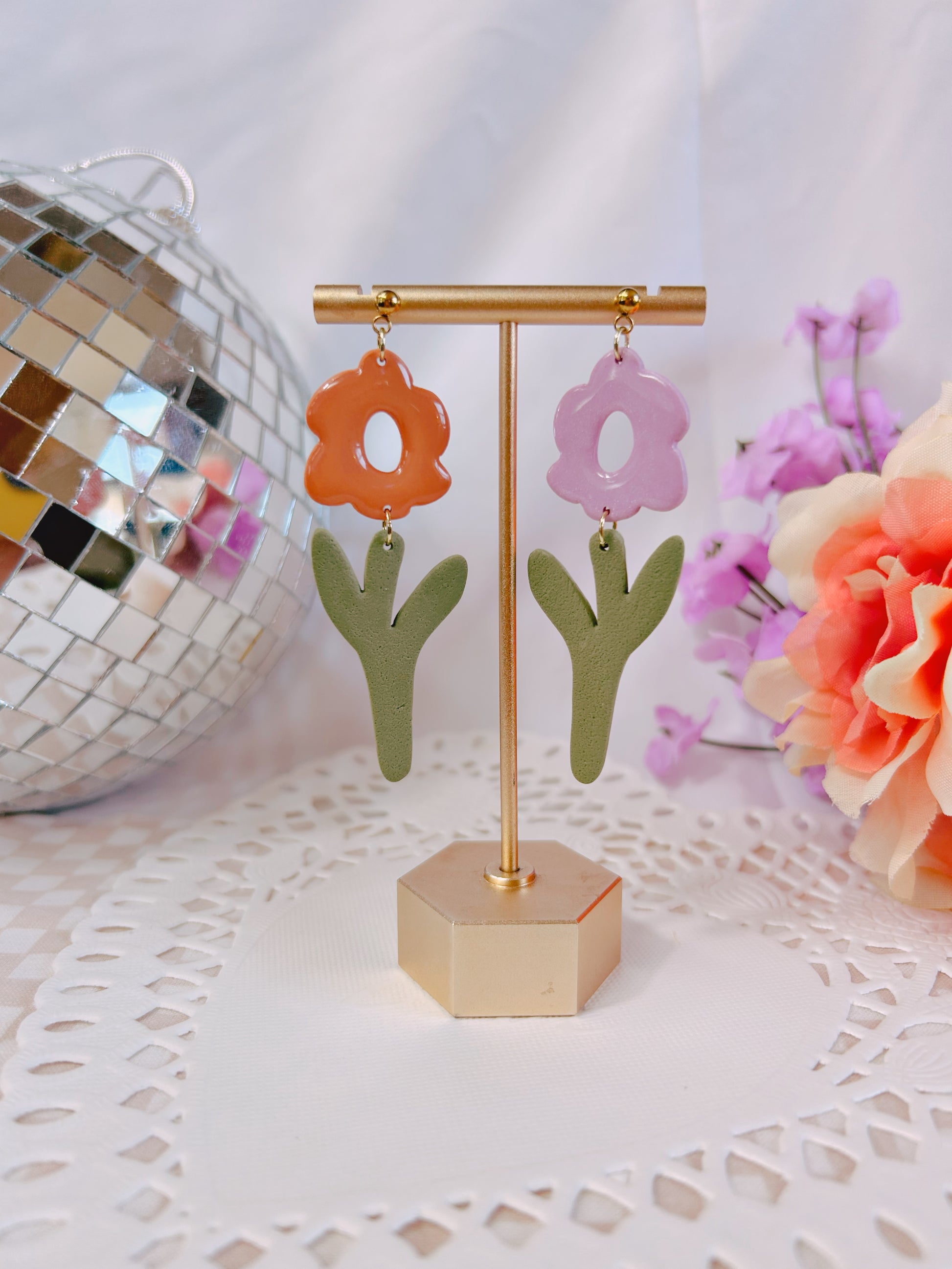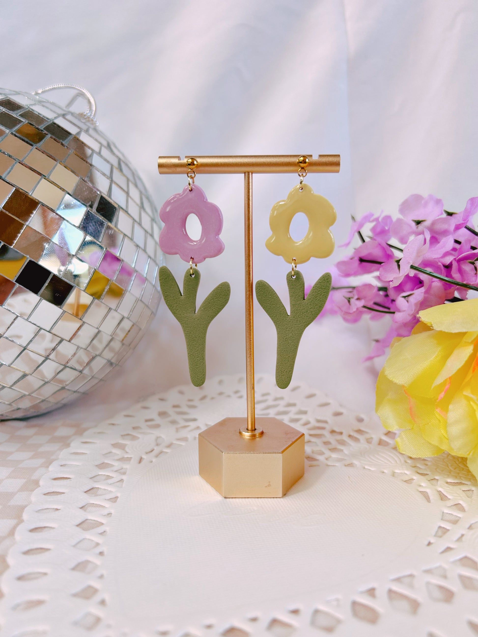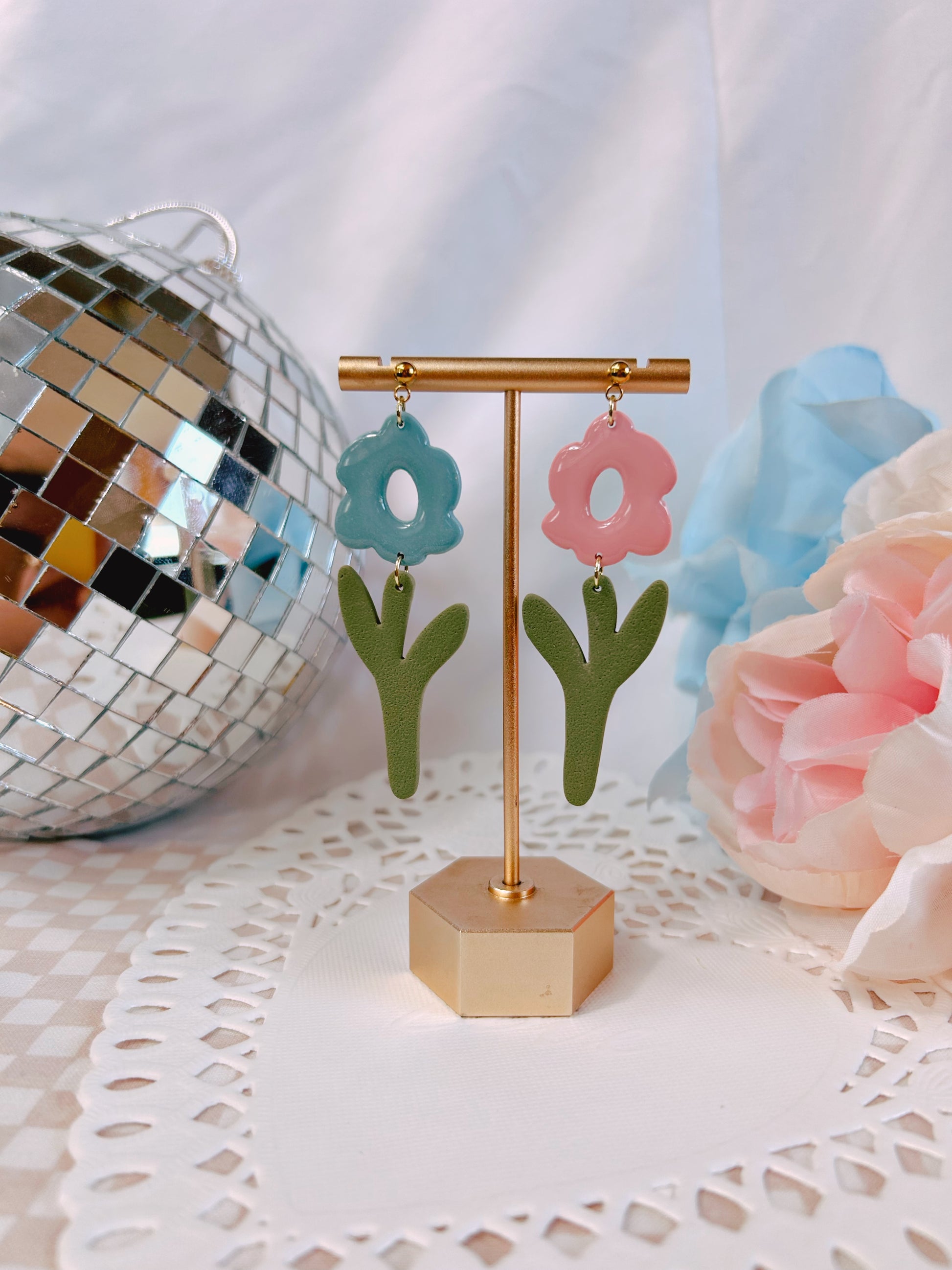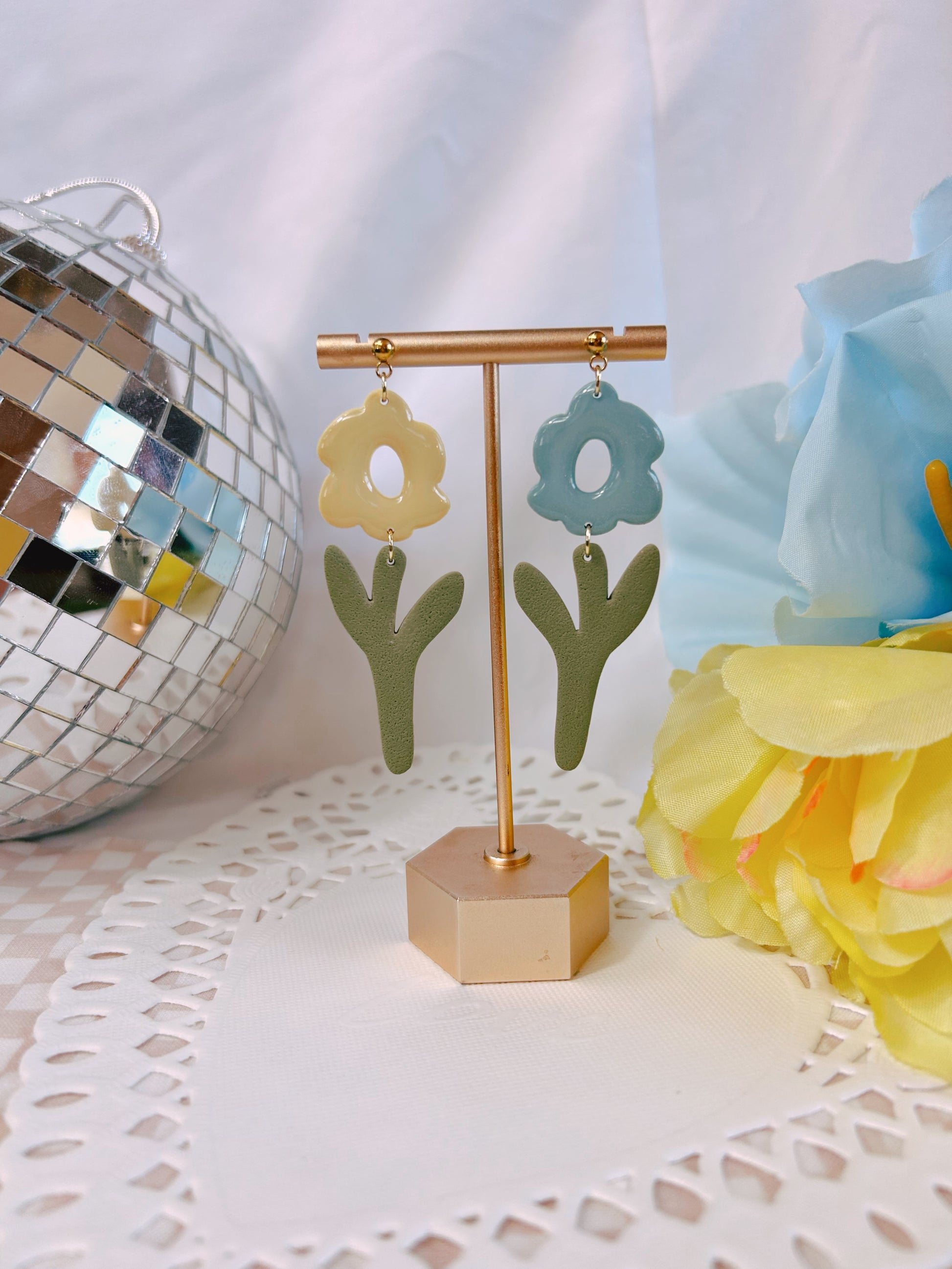 All of my earring designs are made of polymer clay and will include either stainless steel, brass, sterling silver or 14k gold-plated silver studs or hoops. They are all hypoallergenic and safe for those with sensitive ears.