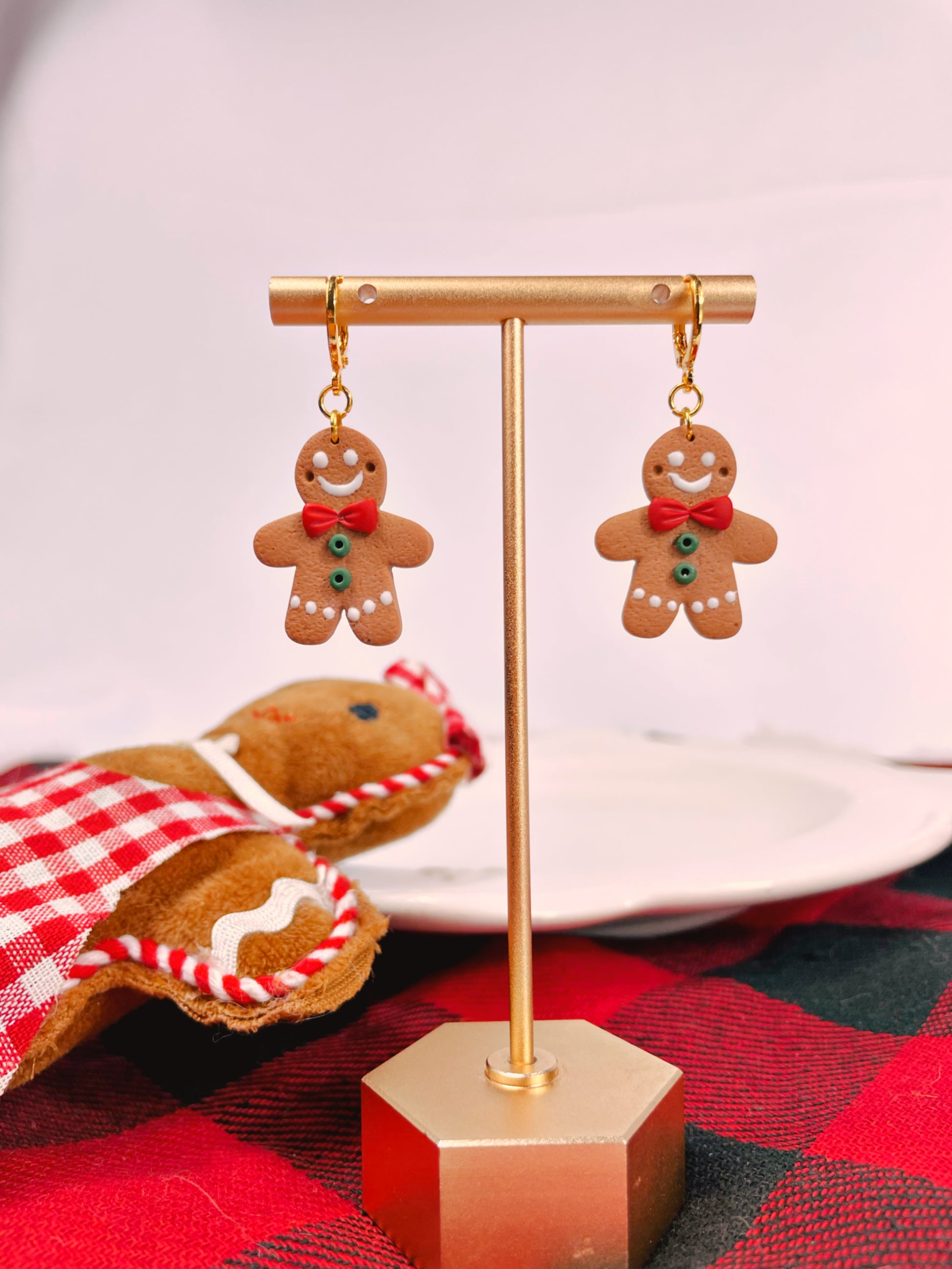 All of my earring designs are made of polymer clay and will include either stainless steel, brass, sterling silver or 14k gold-plated silver studs or hoops. They are all hypoallergenic and safe for those with sensitive ears.