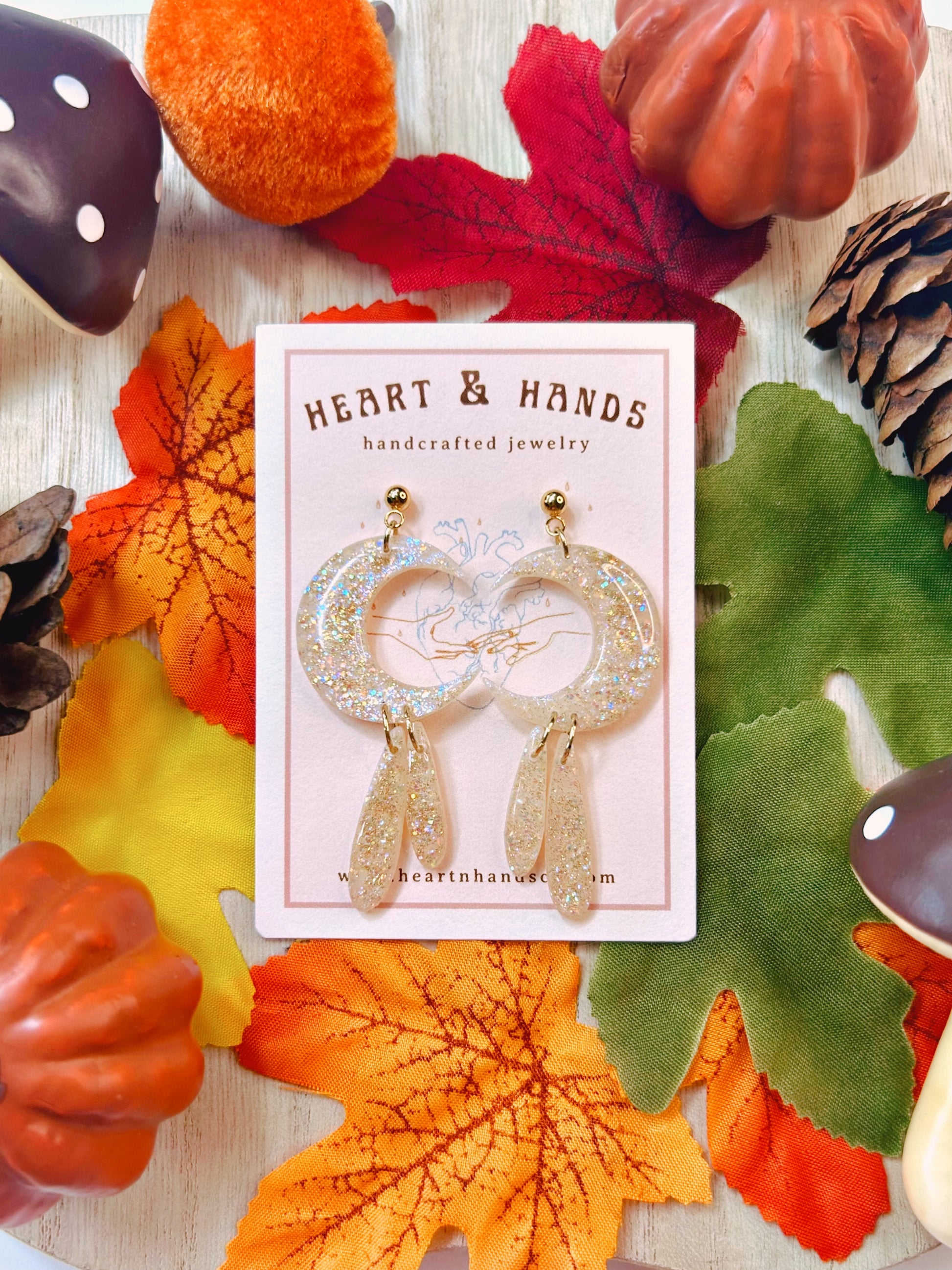All of my earring designs are made of polymer clay and will include either stainless steel, brass, sterling silver or 14k gold-plated silver studs or hoops. They are all hypoallergenic and safe for those with sensitive ears.