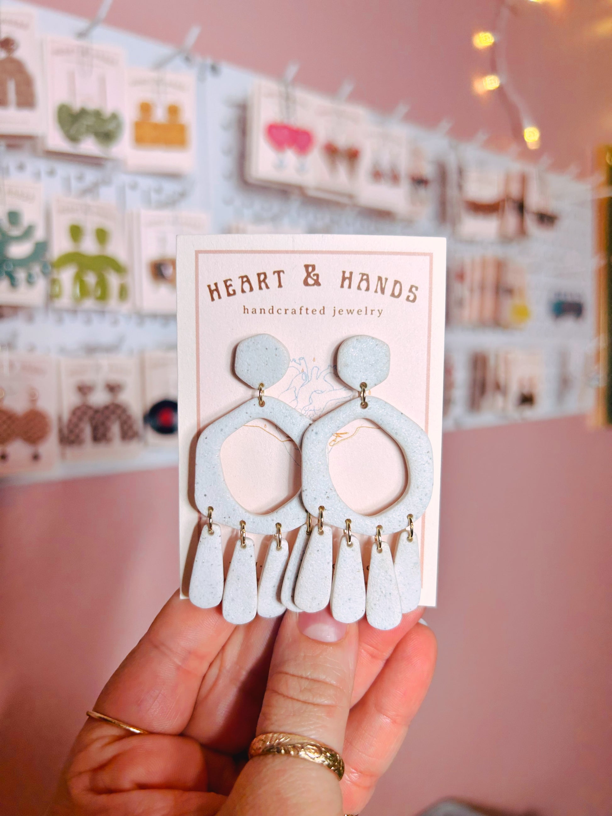 All of my earring designs are made of polymer clay and will include either stainless steel, brass, sterling silver or 14k gold-plated silver studs or hoops. They are all hypoallergenic and safe for those with sensitive ears.