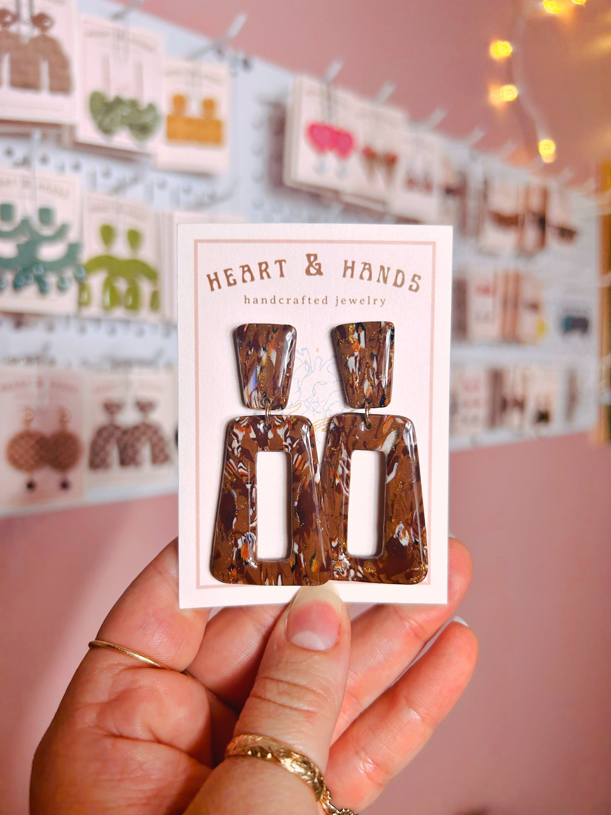 All of my earring designs are made of polymer clay and will include either stainless steel, brass, sterling silver or 14k gold-plated silver studs or hoops. They are all hypoallergenic and safe for those with sensitive ears.