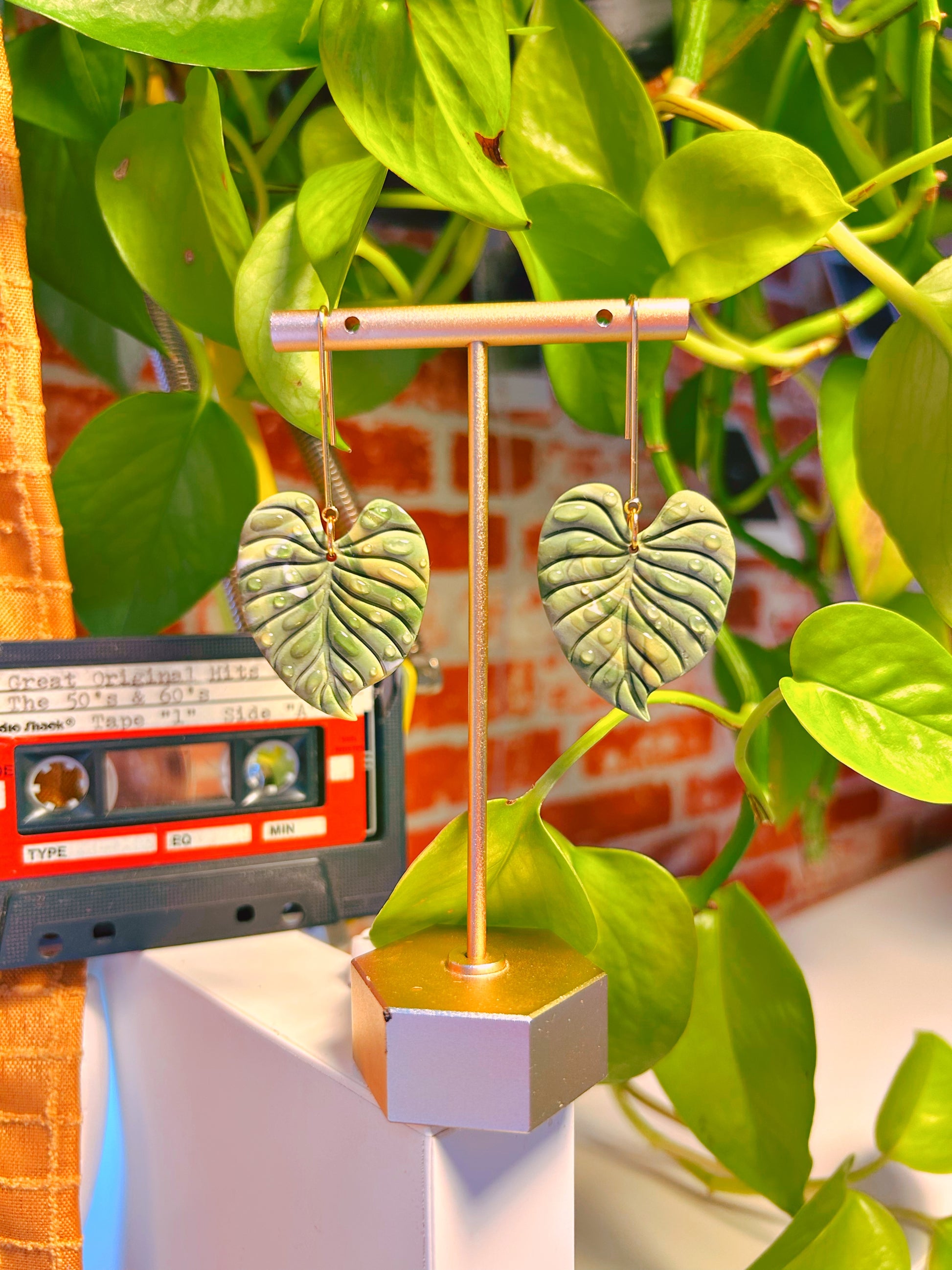 All of my earring designs are made of polymer clay and will include either stainless steel, brass, sterling silver or 14k gold-plated silver studs or hoops. They are all hypoallergenic and safe for those with sensitive ears.