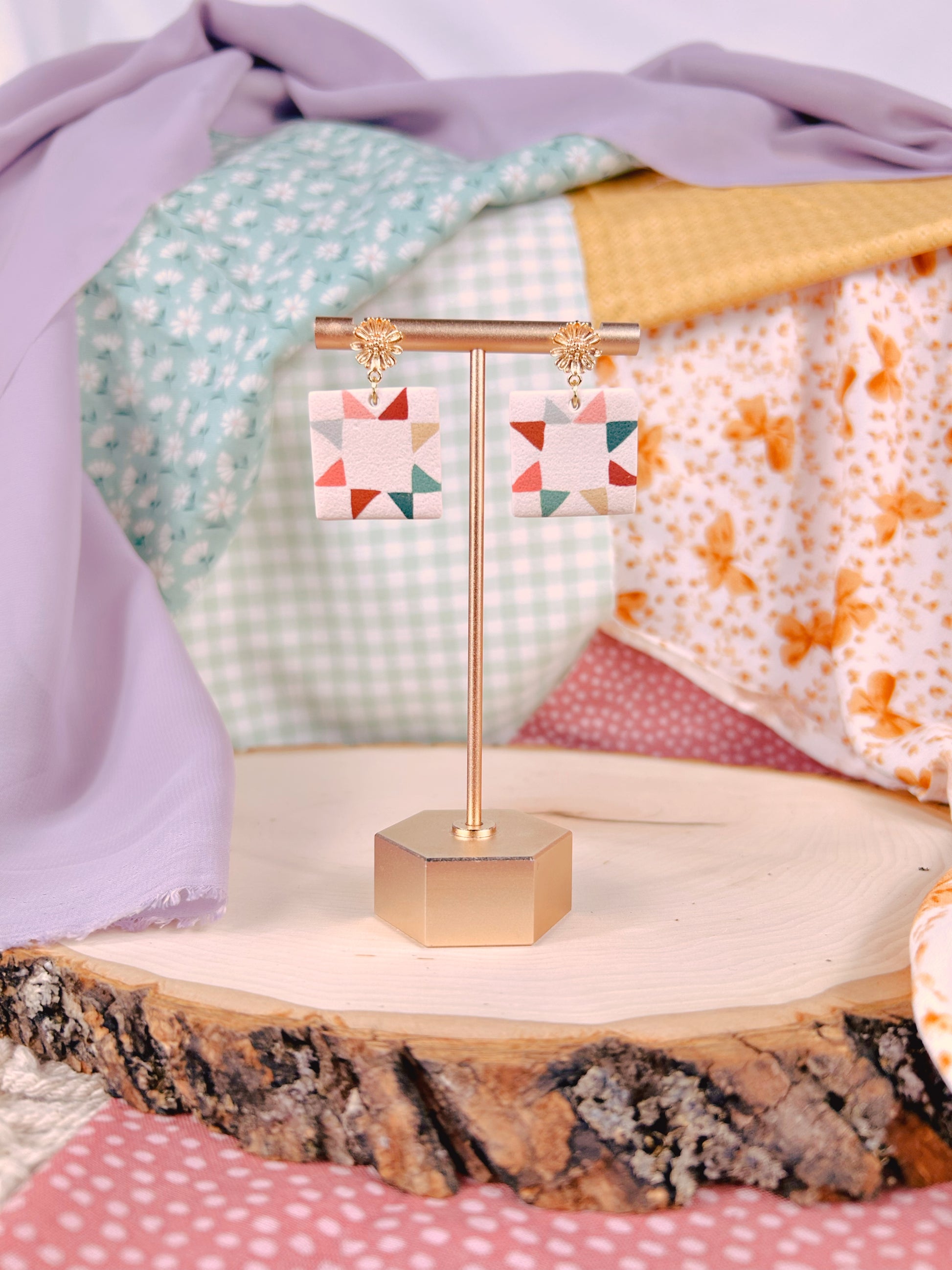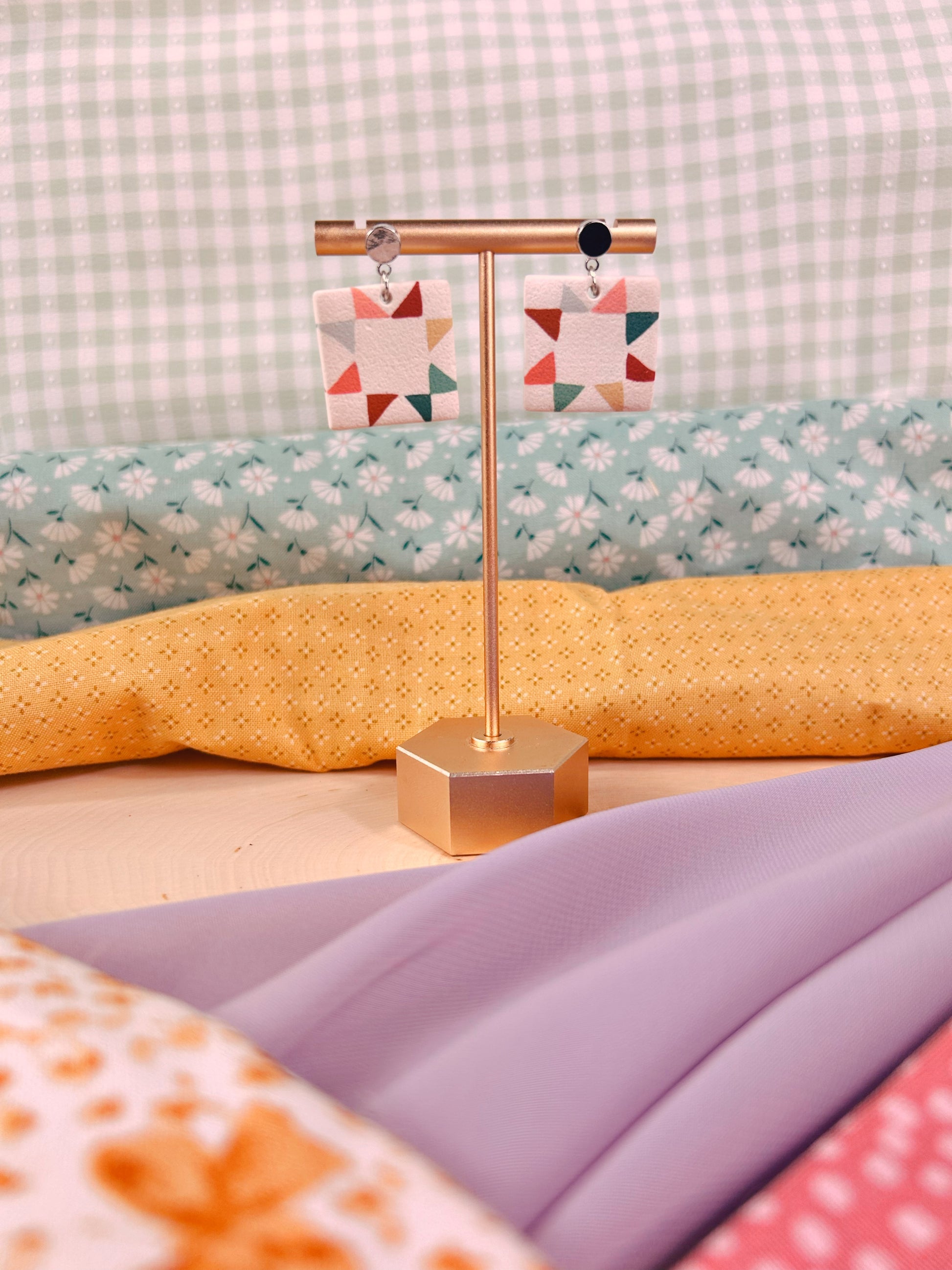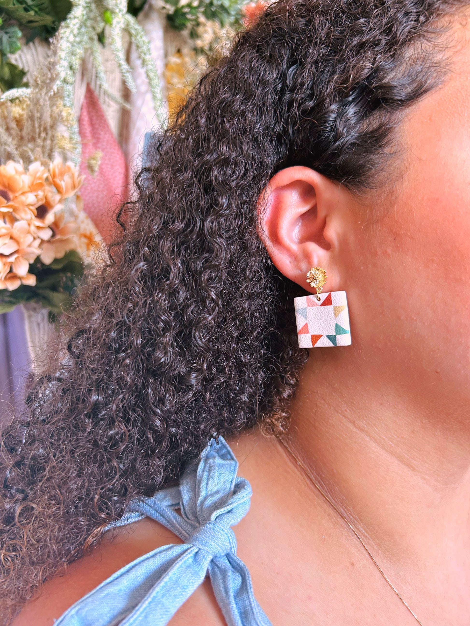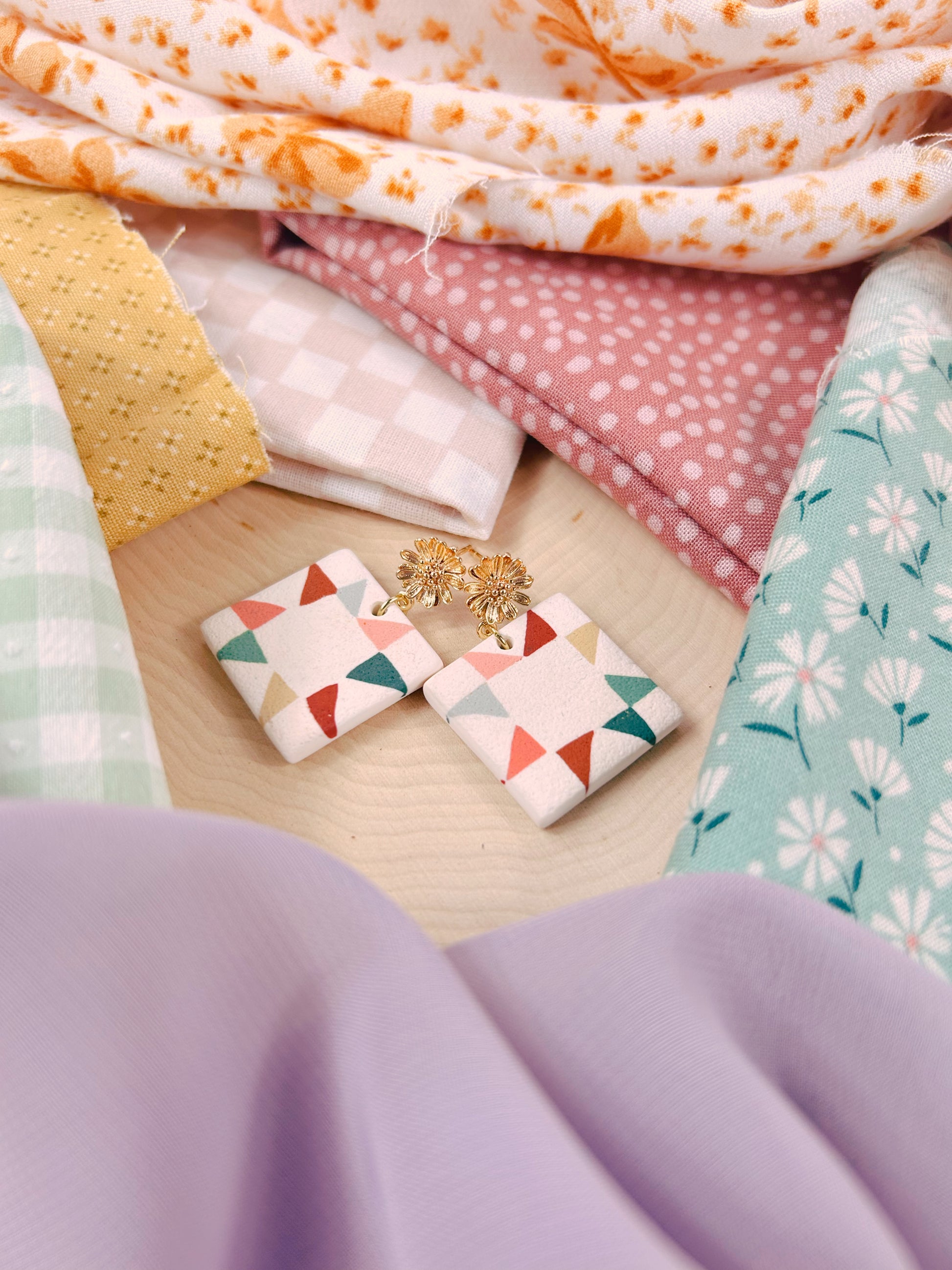 All of my earring designs are made of polymer clay and will include either stainless steel, brass, sterling silver or 14k gold-plated silver studs or hoops. They are all hypoallergenic and safe for those with sensitive ears.