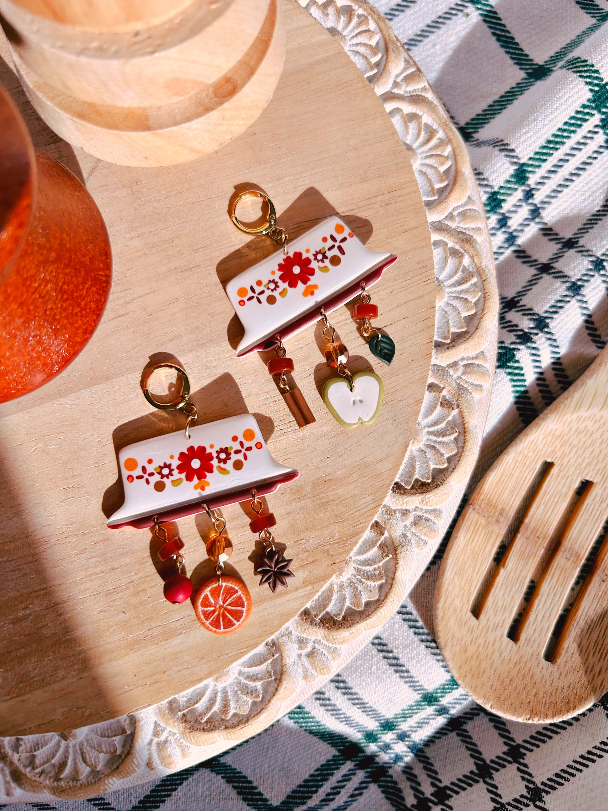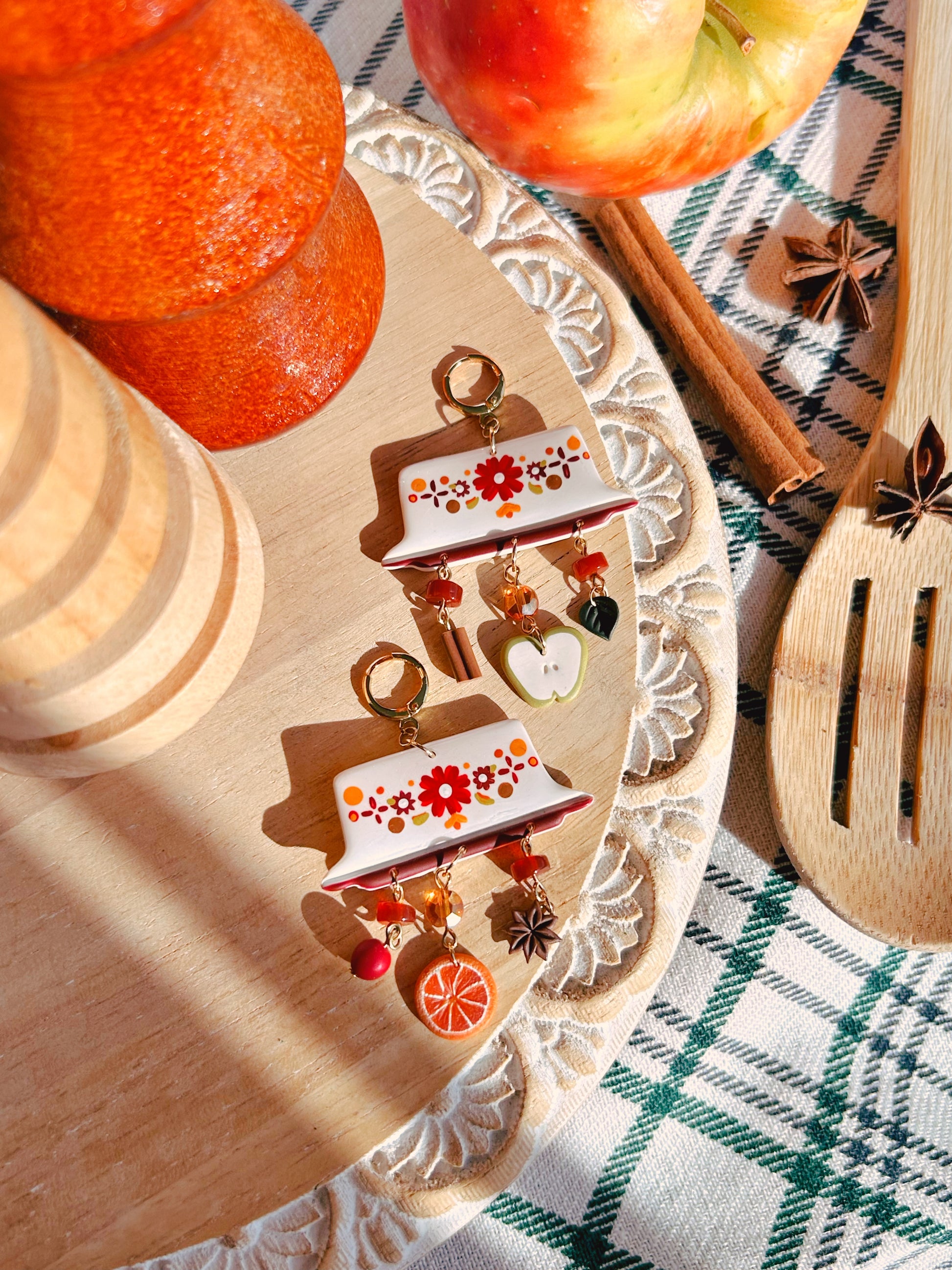 All of my earring designs are made of polymer clay and will include either stainless steel, brass, sterling silver or 14k gold-plated silver studs or hoops. They are all hypoallergenic and safe for those with sensitive ears.
