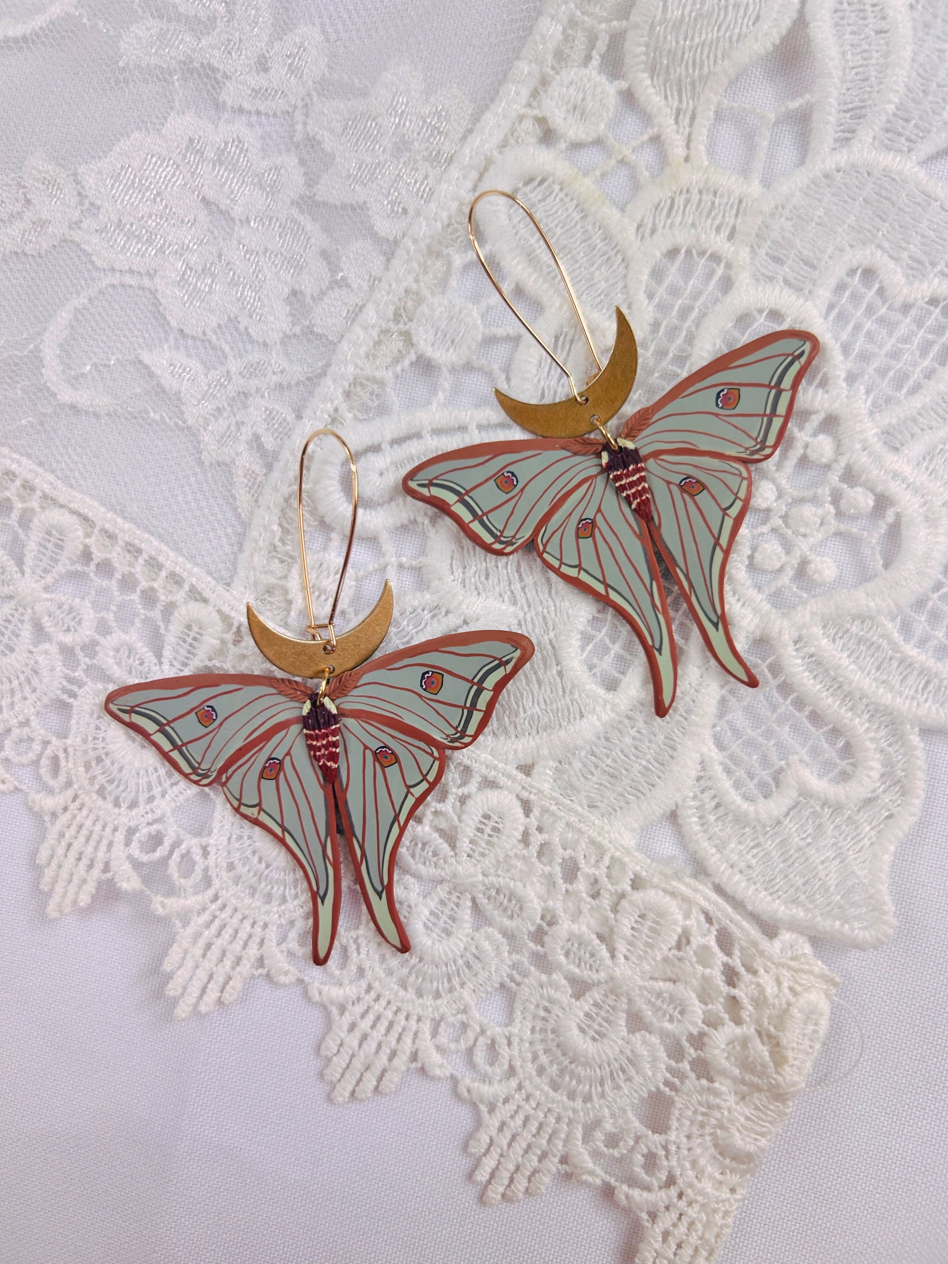 All of my earring designs are made of polymer clay and will include either stainless steel, brass, sterling silver or 14k gold-plated silver studs or hoops. They are all hypoallergenic and safe for those with sensitive ears.