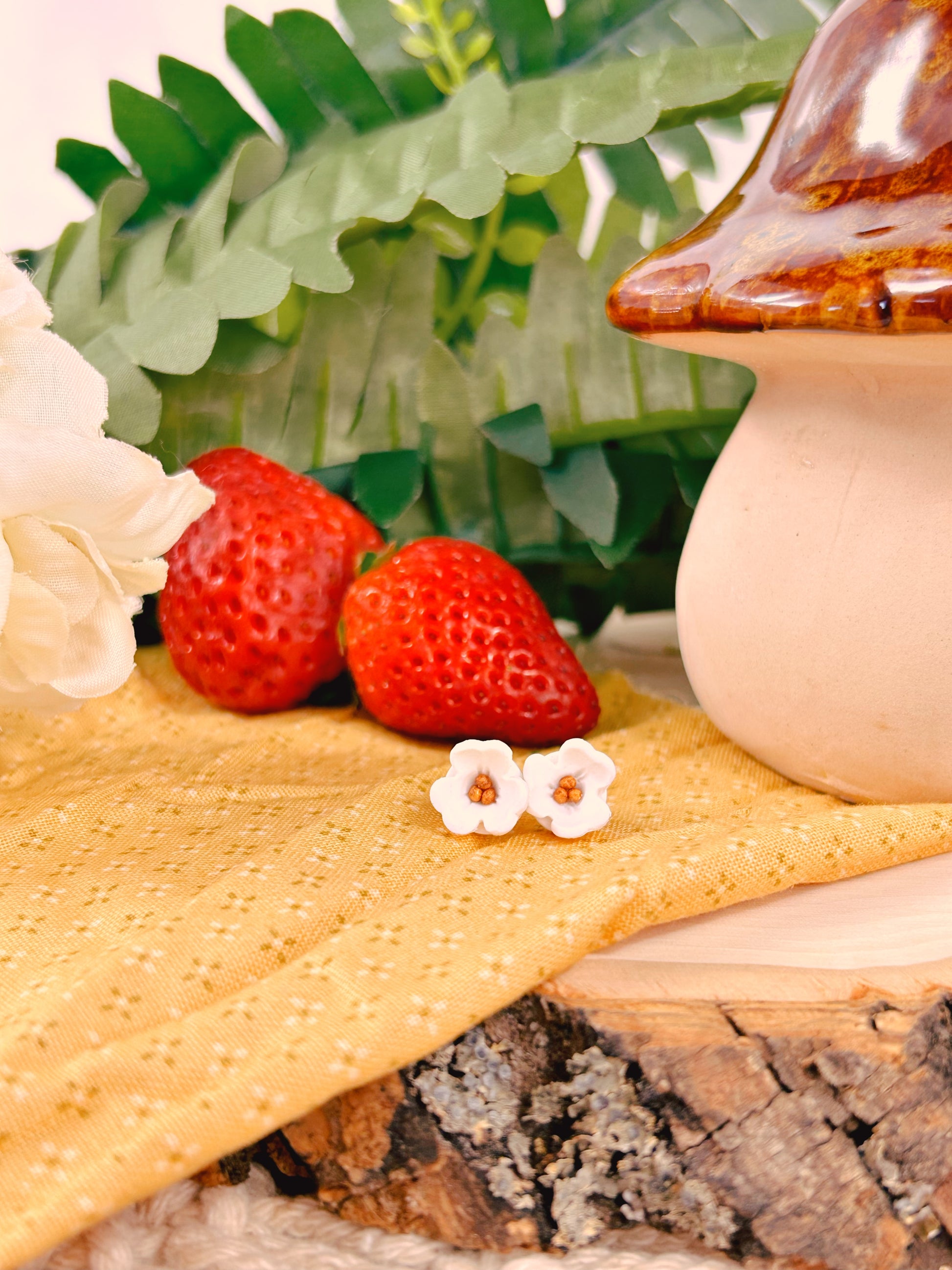 All of my earring designs are made of polymer clay and will include either stainless steel, brass, sterling silver or 14k gold-plated silver studs or hoops. They are all hypoallergenic and safe for those with sensitive ears.
