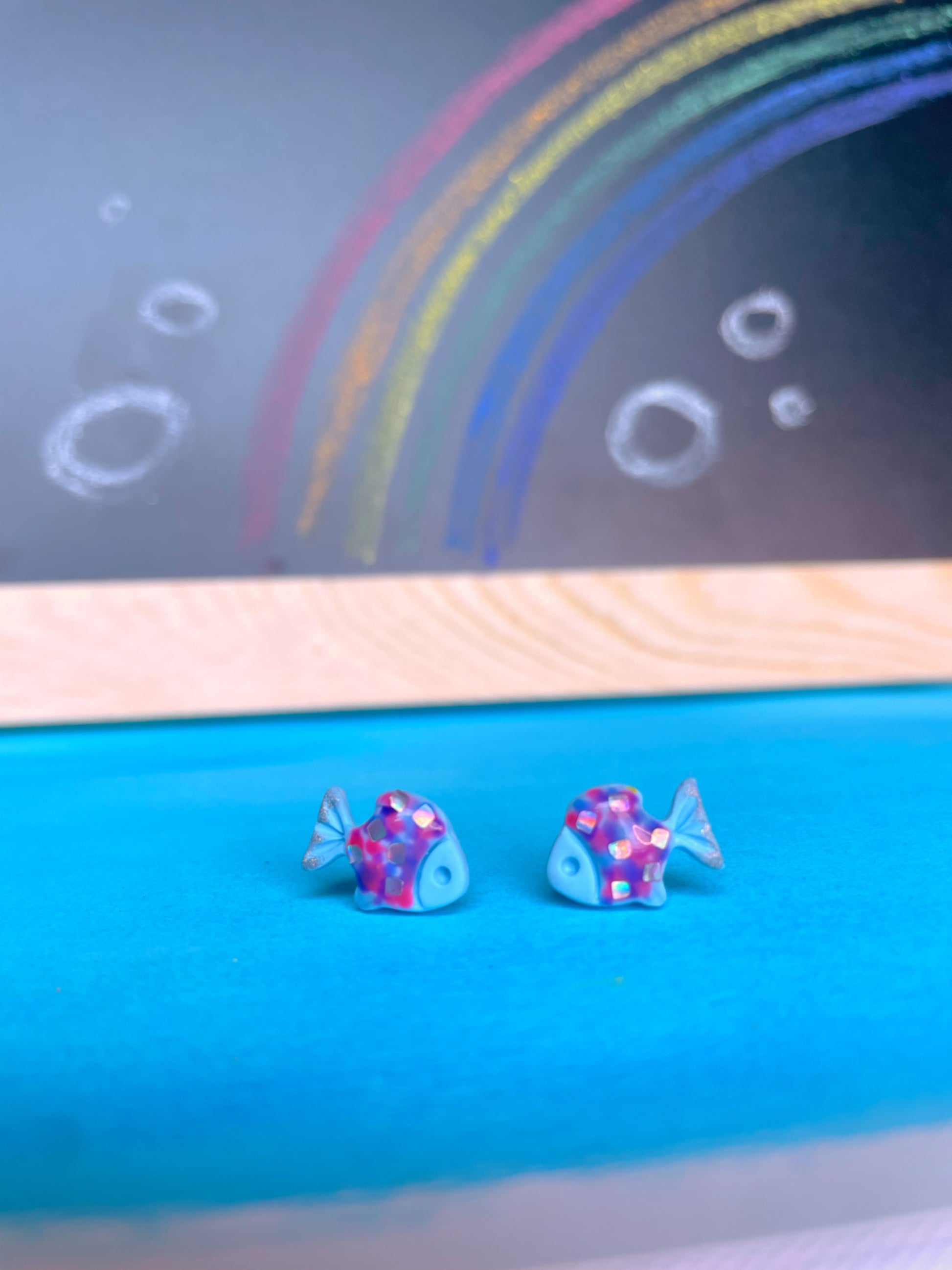 All of my earring designs are made of polymer clay and will include either stainless steel, brass, sterling silver or 14k gold-plated silver studs or hoops. They are all hypoallergenic and safe for those with sensitive ears.