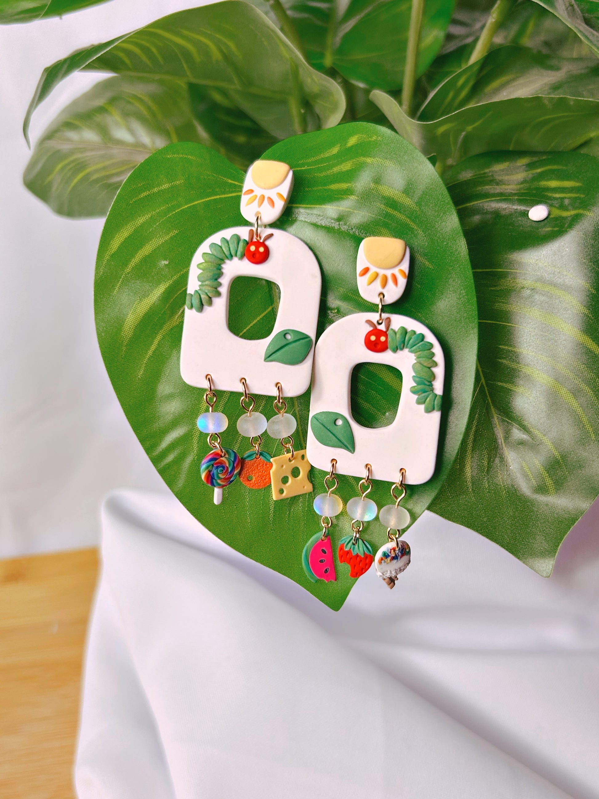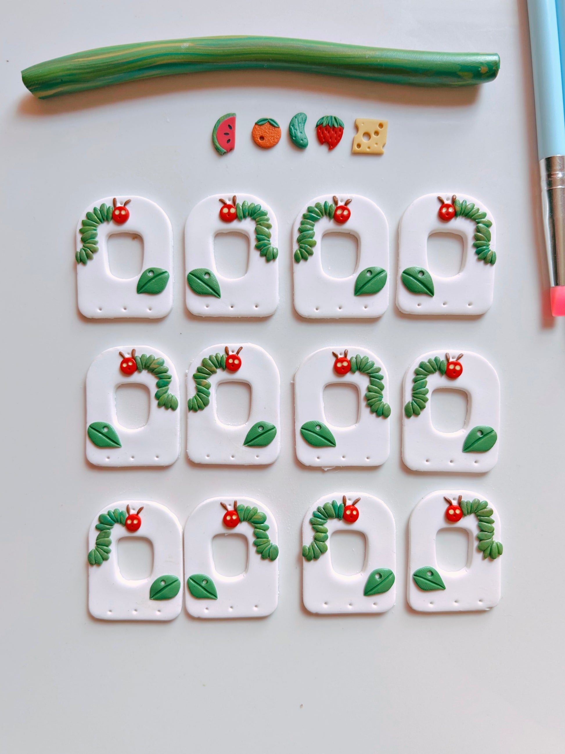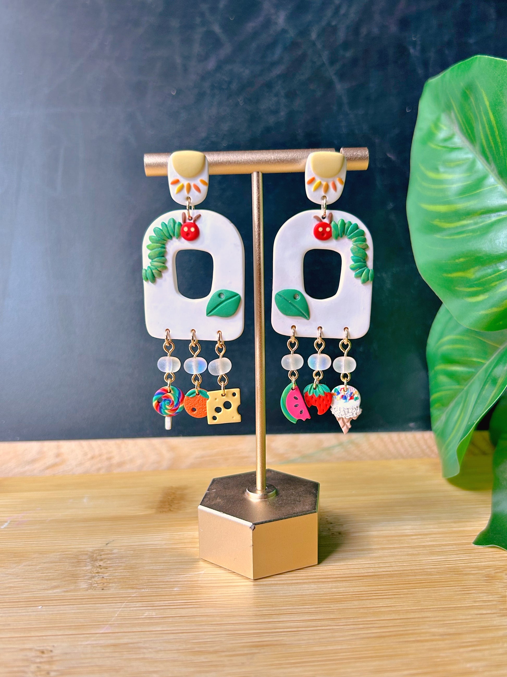 All of my earring designs are made of polymer clay and will include either stainless steel, brass, sterling silver or 14k gold-plated silver studs or hoops. They are all hypoallergenic and safe for those with sensitive ears.