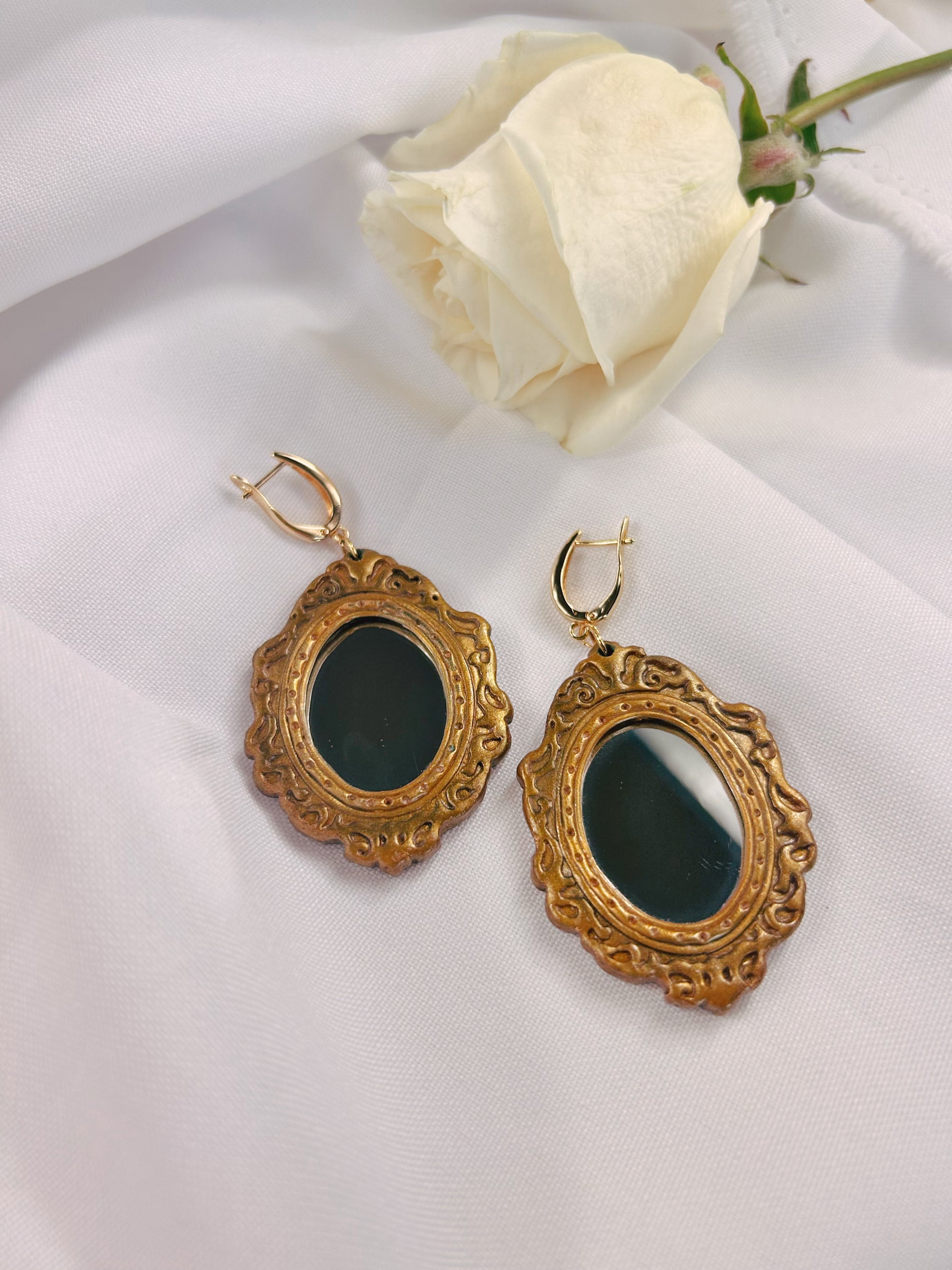 All of my earring designs are made of polymer clay and will include either stainless steel, brass, sterling silver or 14k gold-plated silver studs or hoops. They are all hypoallergenic and safe for those with sensitive ears.