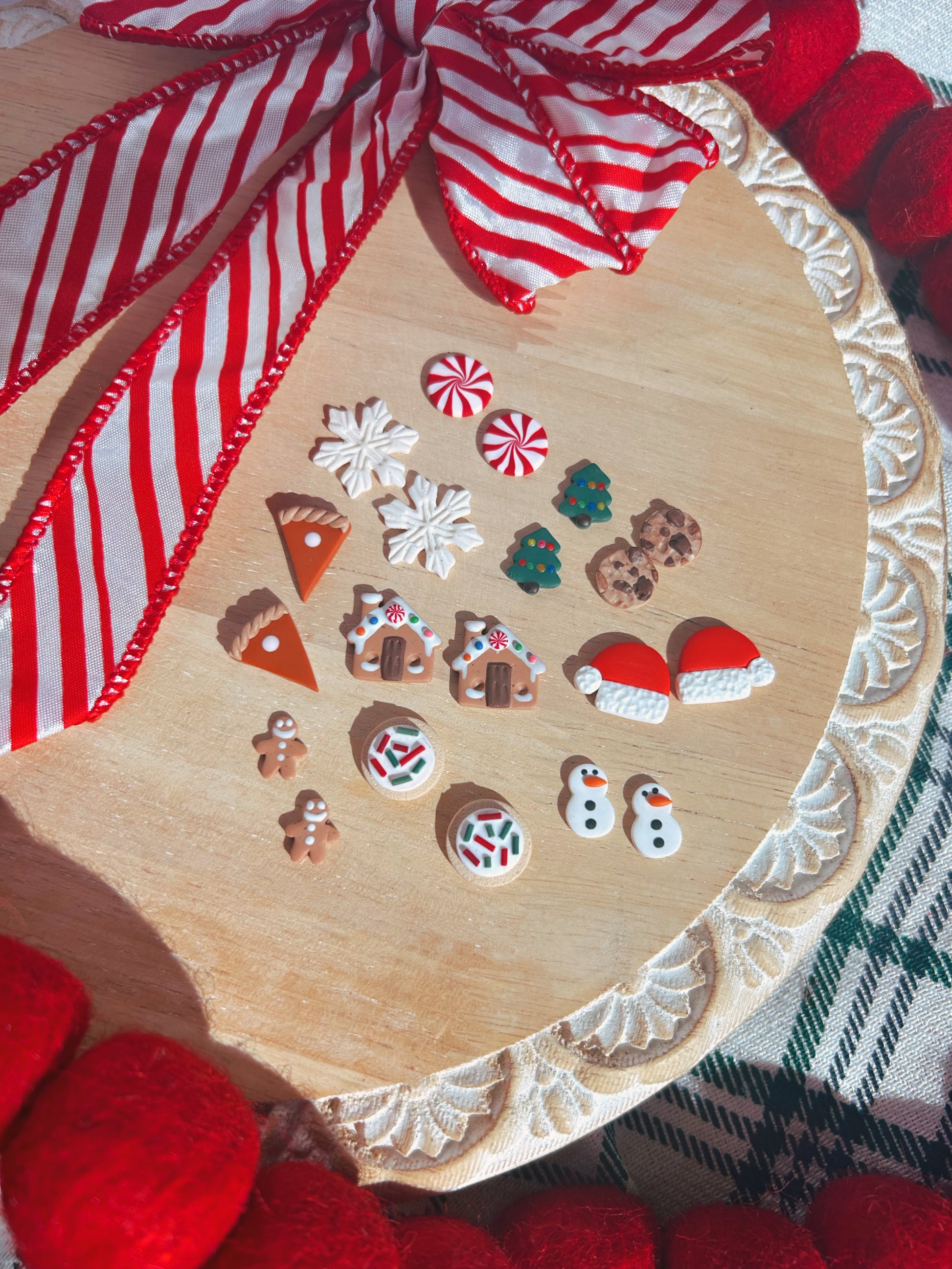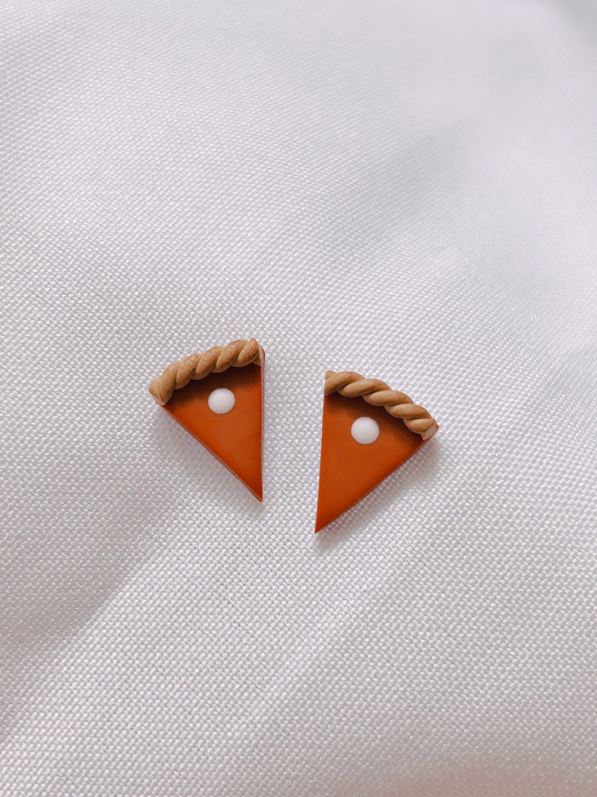 All of my earring designs are made of polymer clay and will include either stainless steel, brass, sterling silver or 14k gold-plated silver studs or hoops. They are all hypoallergenic and safe for those with sensitive ears.